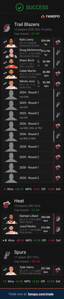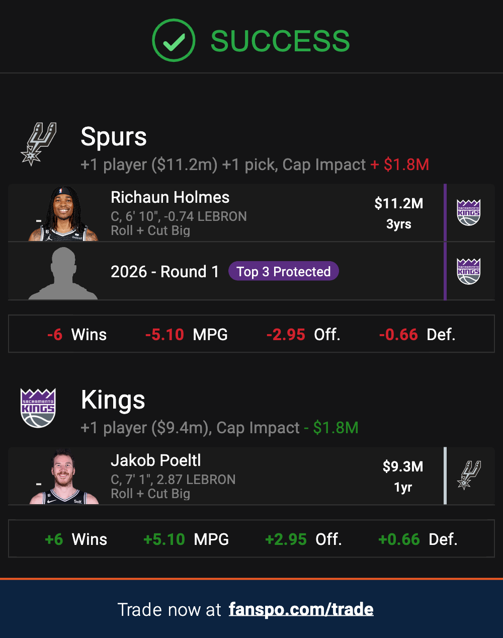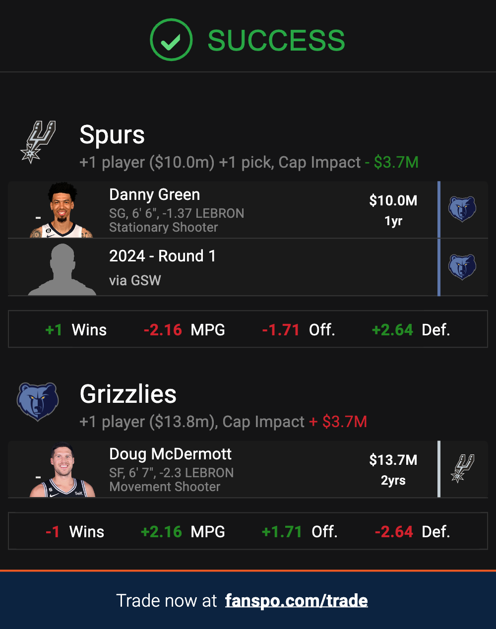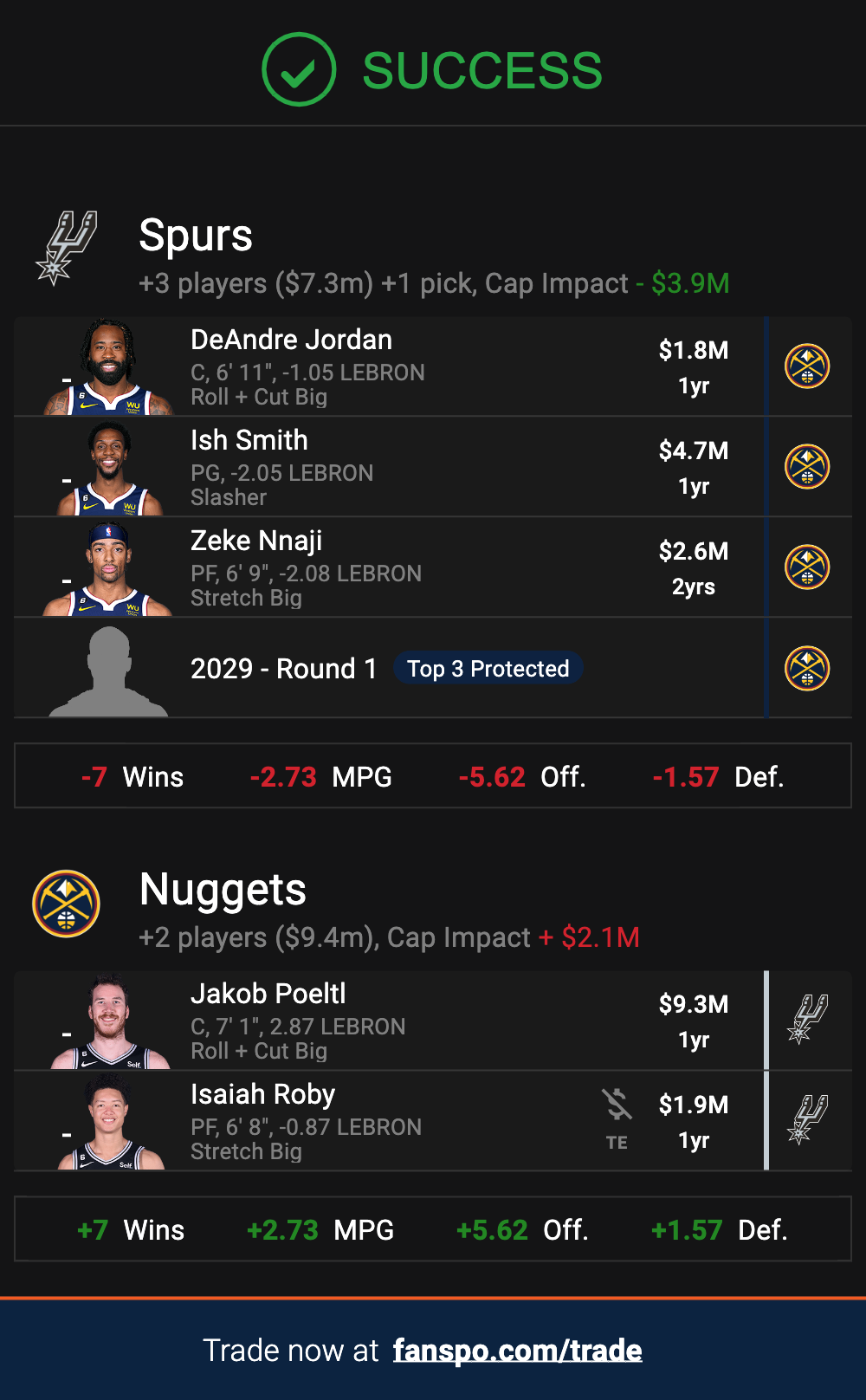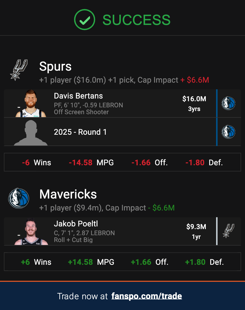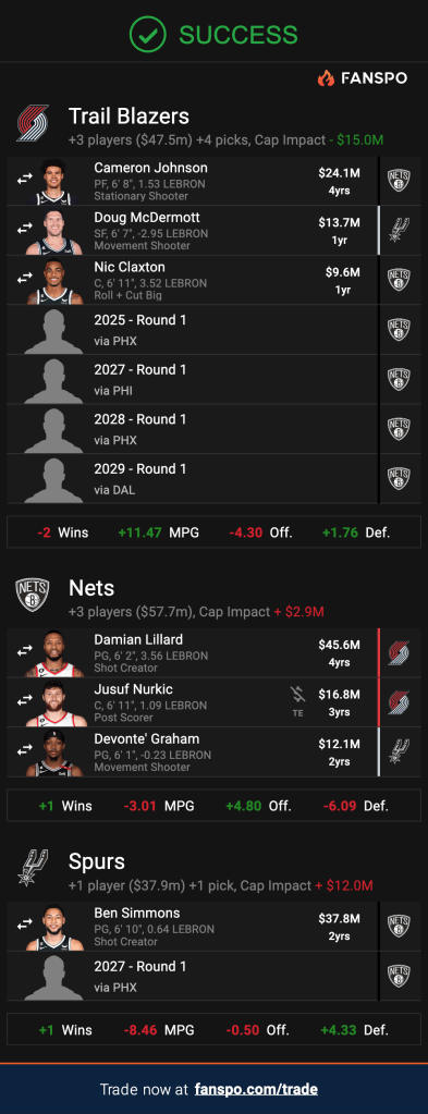 I really like the idea of CJ McCollum. He has a big two year contract that might be too much cost for NOLA compared to the benefit they get from him. I think the Spurs are in good place to overpay for veteran shooting. Basically upgrading the McDermott role.