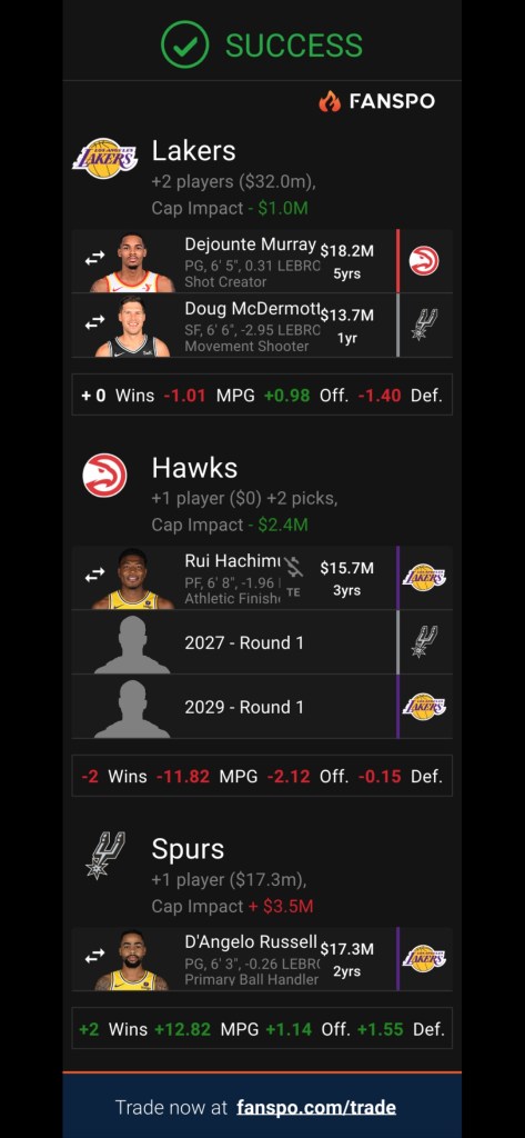 If we don’t trade for Trae or Dejounte, I wonder if we can get in as a third team and route someone else’s current starting PG to us as they make room for Trae. In return we send Atlanta one of their firsts back.