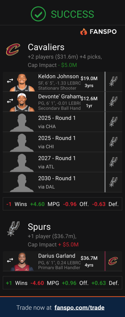 I wonder if we can get Garland. They can’t keep both Mitchell and Garland and they have been way better when Garland is out than when Mitchell is. Keldon, 3 firsts, and salary filler?